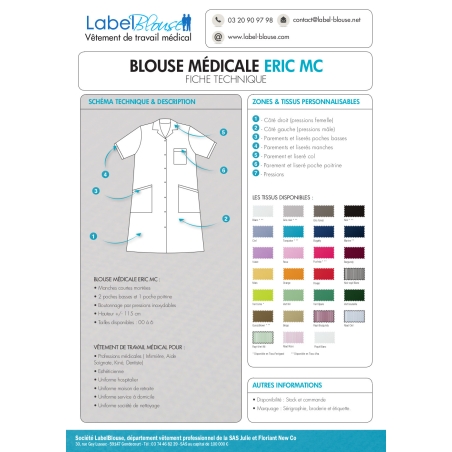 La blouse blanche chimie propose un excellent rapport qualité-prix. Les avis de nos utilisateurs sont unanimes : un produit indispensable pour tout professionnel à la recherche de qualité et confort au quotidien. N'hésitez pas à découvrir l'ensemble de nos blouses médicales, également disponibles pour les enfants, pour une protection adaptée à chaque membre de votre équipe. Avec le modèle Eric de Label Blouse, vous choisissez une tenue de travail qui ne fait aucun compromis entre style et fonctionnalité. Facile à entretenir, elle se lave en machine à 70°C, vous permettant de la garder propre et fraîche jour après jour. Optez pour la blouse blanche chimie et laboratoire 100 % coton et équipez-vous de la meilleure solution pour vos besoins professionnels.