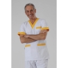 Fabriquée dans un tissu sergé de haute qualité (65% polyester, 35% coton), cette tunique médicale offre une grande résistance au lavage fréquent, jusqu'à 60 degrés en machine. De plus, sa finition parement jaune paille au col et aux poches ajoute une touche élégante et professionnelle à l'ensemble. Son enfilage par la tête rend la blouse pratique et rapide à mettre et à enlever.