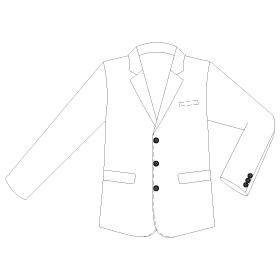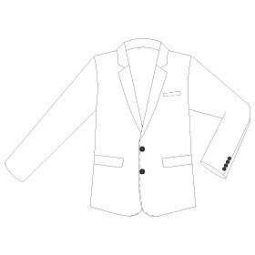 Veste de costume légèrement ceintrée 2 boutons boutonnière contrasté col et manches, doublure 100% polyester, 1 poche poitrine, 2 poches ville avec rabats, 1 fentes dos, col cran ouvert, poches intérieures renforcées.