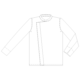 Veste de cuisine homme col Mao, manches longues, bas de manches à revers, 1 poche stylo sur la manche. Croisure avec boutonnage sous patte. Oeillets de respiration sous les bras.