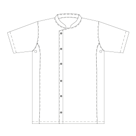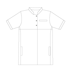 Modèle homme, tunique col officier, manches courtes montées, 3 poches, boutons pressions inoxydables. Hauteur : 85 cm.