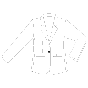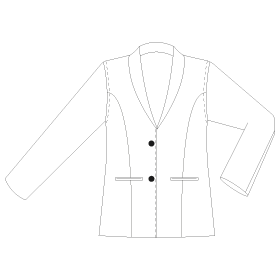 Veste femme 3 boutons, col cran ouvert, 2 fausses poches à rabat, 1 poches intérieur, sans fente, longue.