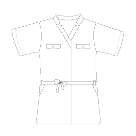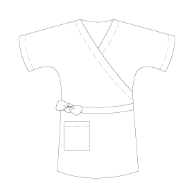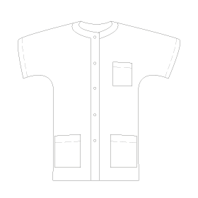 Tunique col Croisé, manches courtes forme kimono, patte de boutonnage au centre, liserés aux 3 poches, fermeture par 5 pressions calottées. Hauteur 75 cm.