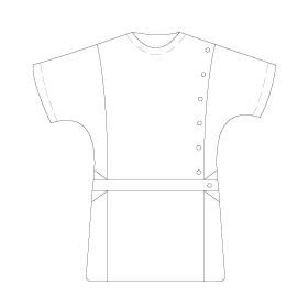 Tunique col ras-de-cou, manches courtes kimono. Boutonnage par pressions calottées. Hauteur 75 cm.