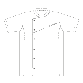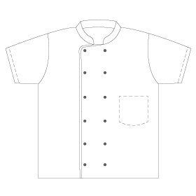 Veste de cuisine homme col Mao, manches courtes, 1 poche poitrine plaquée. Croisure avec 1 rangée de boutons. Oeillets de respiration sous les bras.