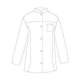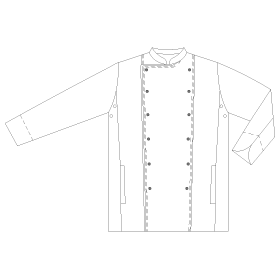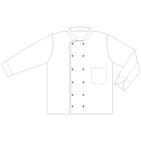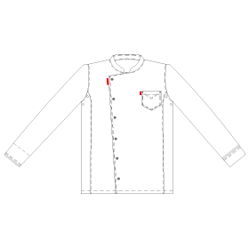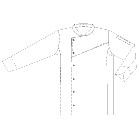 Veste de cuisine homme col Mao, manches longues, bas de manches à revers, poches dans la découpe côté et 1 poche stylo sur la manche. Croisure avec double boutonnage. Oeillets de respiration sous les bras.
