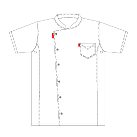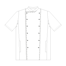Veste de cuisine homme col Mao, manches courtes, poche poitrine passepoilée. Croisure avec 1 rangée de boutons. Oeillets de respiration sous les bras.