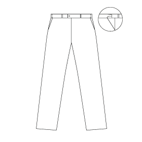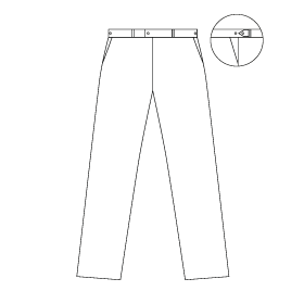 Pantalon coupe ville légèrement ceintrée, 2 poches italiennes, 2 poches arrières avec boutons de fermeture, 6 passants à la ceinture, élastique et boutons de réglage sur les côtés.