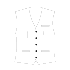 Gilet homme de service à boutons. Coupe élégante et confection soignée. 2 fausses poches passepoilées, dos allover (même matière devant que derrière).