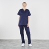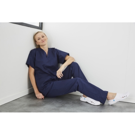 La coupe unisexe et la conception ergonomique de ce pantalon médical en font un vêtement adapté à toutes les morphologies. Sa matière (souvent un mélange coton/polyester ou coton peigné selon fabrication) est pensée pour être facile d’entretien, résistante à l’usage répété et compatible avec des cycles de lavage fréquents, ce qui est indispensable dans le secteur de la santé.