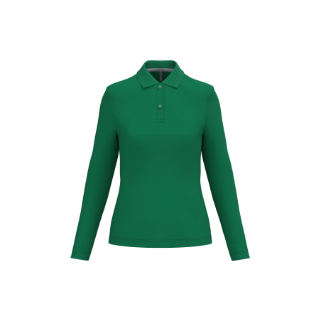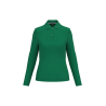 La coupe féminine est élégante sans être restrictive, assurant une grande liberté de mouvement. Les manches longues apportent une couverture supplémentaire, idéale pour les saisons plus fraîches ou les environnements intérieurs climatisés. Le col structuré et la patte de boutonnage ajoutent une touche professionnelle discrète, permettant à ce polo de s’adapter facilement à des tenues casual chic ou plus formelles.