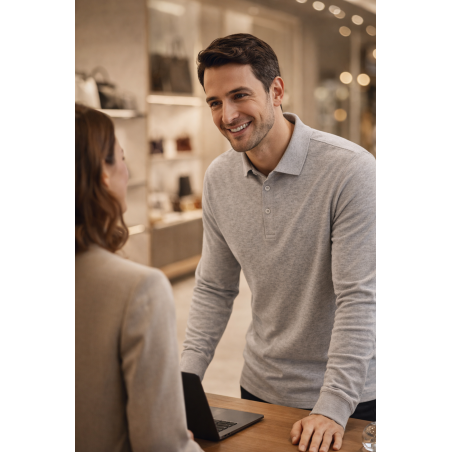 Polo piqué manches longues conçu pour les professionnels en entreprise, commerce et accueil